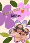 Fleurige verjaardagskaart met illustraties van kleurrijke bloemen, aanpasbare foto en de tekst: 'Happy Birthday'. Verras iemand met deze leuke verjaardagskaart van Tsjip.