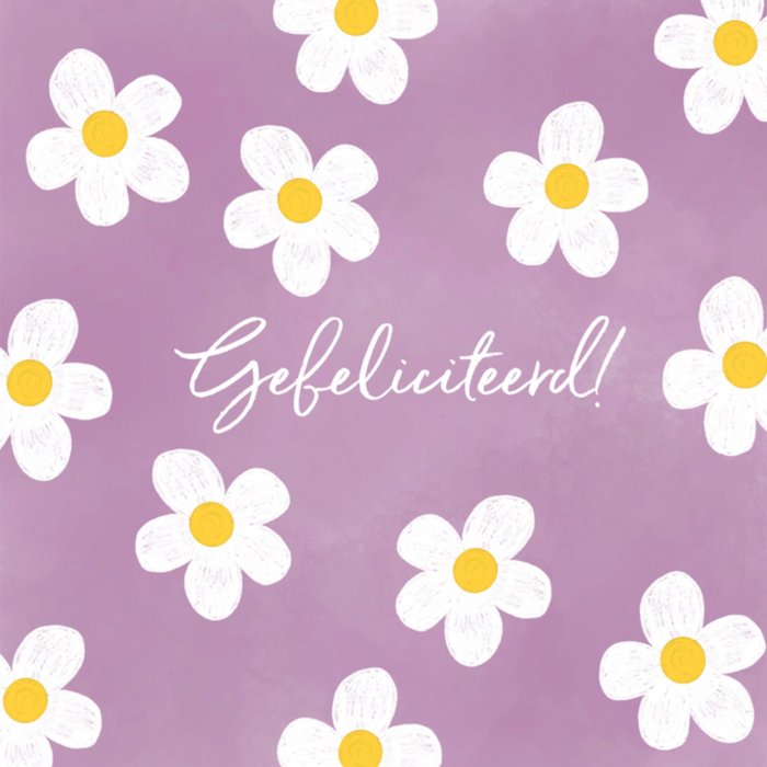 Leuke verjaardagskaart met madeliefjes en de tekst: Gefeliciteerd!
