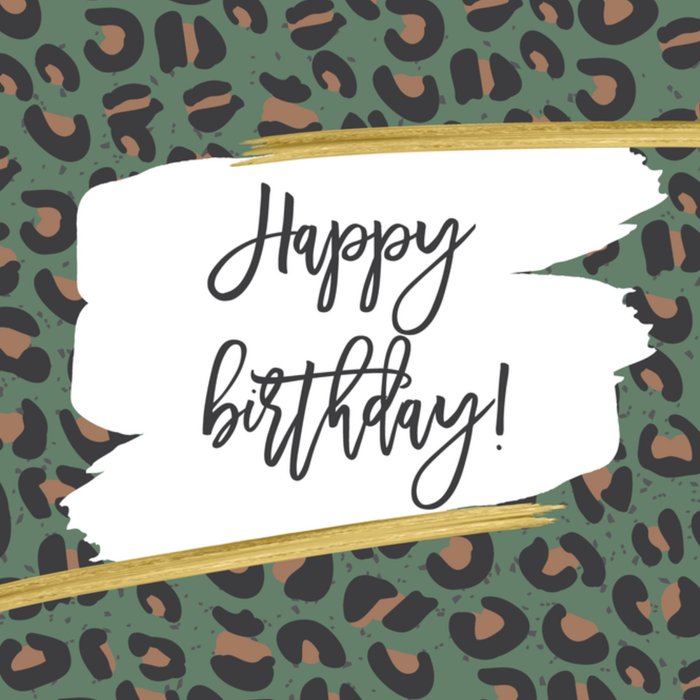 Feliciteer de jarige met deze vette verjaardagskaart met tijgerprint. Op de kaart staat "Happy birthday!"