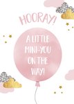 Wauw! Wat leuk! Jij kent iemand die zwanger is van een meisje! Stuur deze kaart met tekst: Hooray! A little mini-you on the way, om te verrassen.
