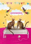 Een leuke Paperclip kaart met twee katten op een bankje die gaan samenwonen met de tekst: Samenwonen.