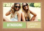 Bruine foto-uitndoging van Greetz met eigen datum en foto op de voorkant.