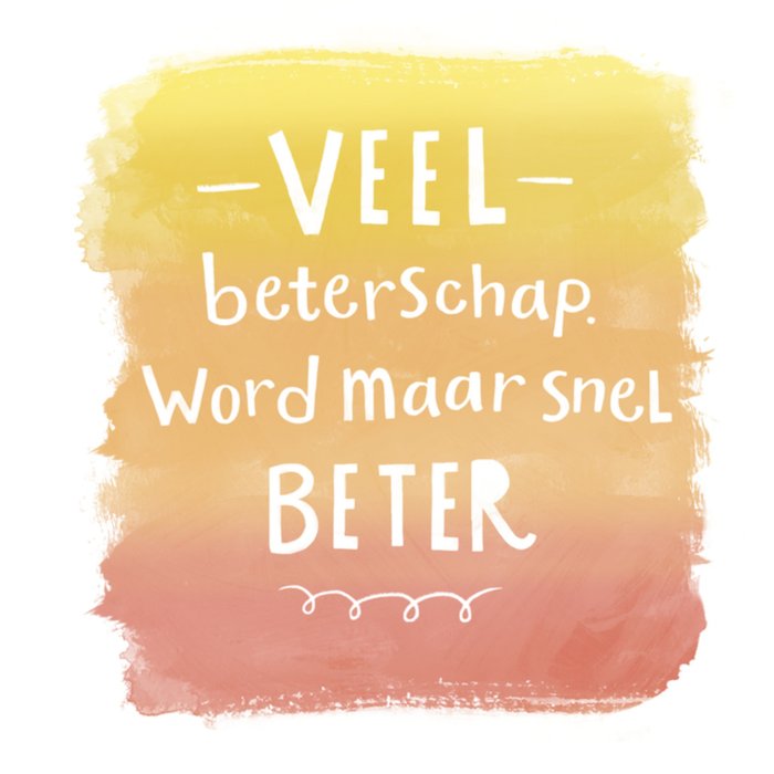Wens iemand beterschap met deze kaart. De achtergrond van deze kaart is degrade met de tekst: "Veel beterschap word maar snel beter."
