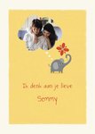 Leuke kaart van UK Greetings met daarop een olifant en de tekst: Ik denk aan je lieve [naam].