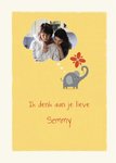 Leuke kaart van UK Greetings met daarop een olifant en de tekst: Ik denk aan je lieve [naam].