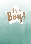 Laat iedereen in jouw omgeving weten dat er een jongetje geboren wordt met deze leuke "it's a boy" kaart. Op de kaart staat ook een ster afgebeeld en is de achtergrond een blauwe kleur.
