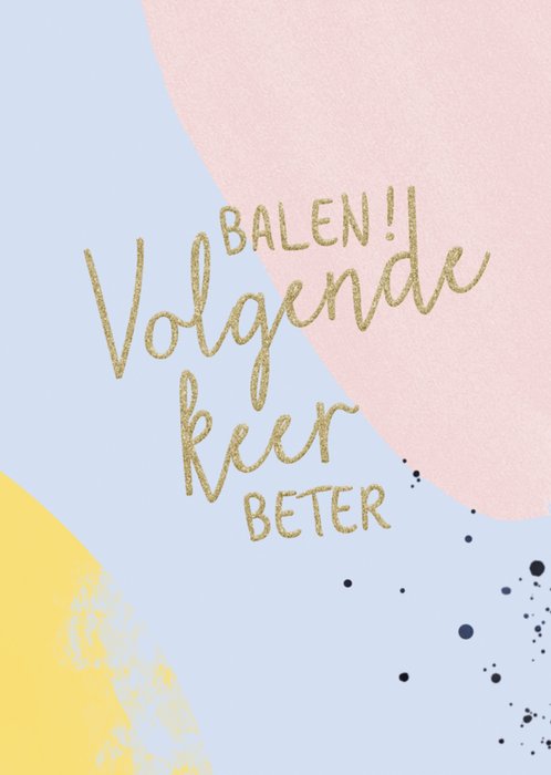 Leuke pastelkleurige gezakt kaart met de tekst: Balen! Volgende keer beter.
