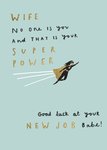 Op deze nieuwe baan kaart voor je vriendin of vrouw staat: Wife no one is you and that is your super power. Good luck at your new job babe!