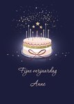 Op deze mooie verjaardagskaart zie je een taart onder de sterrenhemel. Op de taart staat kaarsen en de tekst op de kaart kan worden aangepast!