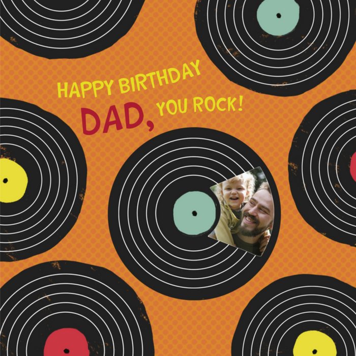 Wens een fijne verjaardag met deze leuke kaart van UK Greetings. Op de kaart staat: Happy birthday dad, you rock! Je kunt ook een foto toevoegen.