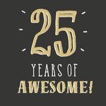 Leuke verjaardagskaart met de tekst: 25 years of awesome!