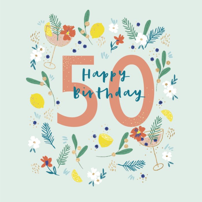 Mooie verjaardagskaart om een Sarah een fijne 50ste verjaardag mee te wensen met de tekst: 50 happy birthday.