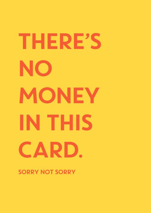Grappige verjaardagskaart met de tekst: There's no money in this card. Sorry not sorry