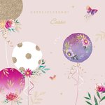 Leuke verjaardagskaart met ballonnen en aanpasbare naam.