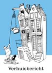 Vrolijke verhuisbericht van Fiep Westendorp in blauw en wit met kat Pom.