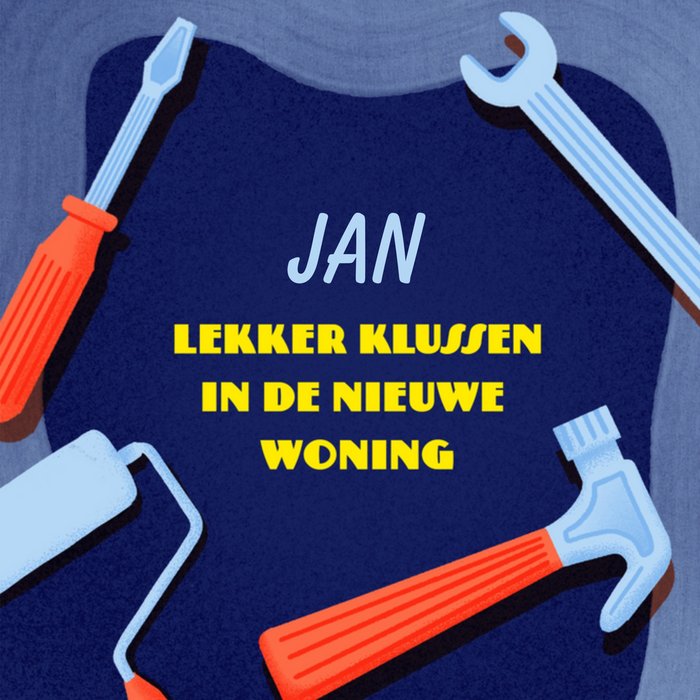Bij een nieuwe woning, hoort ook heel veel klussen! Om een steuntje in de rug te geven kun je deze leuke kluskaart van Greetz sturen. Op de kaart staat: Lekker klussen in de nieuwe woning. Ook kun je een naam toevoegen.
