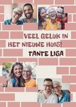 Gaat jouw super leuke tante verhuizen? En wil je haar een leuke kaart hiervoor sturen? Doe dat dan met een verhuiskaart van Greetz. Op deze leuke kaart staat: Veel geluk in het nieuwe huis! Ook kun je een naam en foto toevoegen.