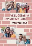 Gaat jouw super leuke tante verhuizen? En wil je haar een leuke kaart hiervoor sturen? Doe dat dan met een verhuiskaart van Greetz. Op deze leuke kaart staat: Veel geluk in het nieuwe huis! Ook kun je een naam en foto toevoegen.