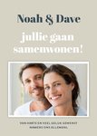 Gaat je collega, baas of zakenpartner in een nieuw huis wonen? Stuur hem of haar dan een leuke verhuiskaart van Greetz! Op deze kaart staat: jullie gaan samenwonen! Van harte en veel geluk gewenst namens ons allemaal. Ook kun je een naam en foto toevoegen.