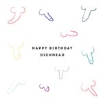 Op deze grappige kaart met piemels staat: Happy birthday dickhead.