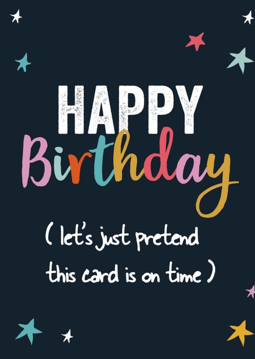Te laat met het sturen van een kaartje? Stuur dan deze leuke kaart van Greetz met de tekst: Happy Birthday (let's just pretend this card is on time).