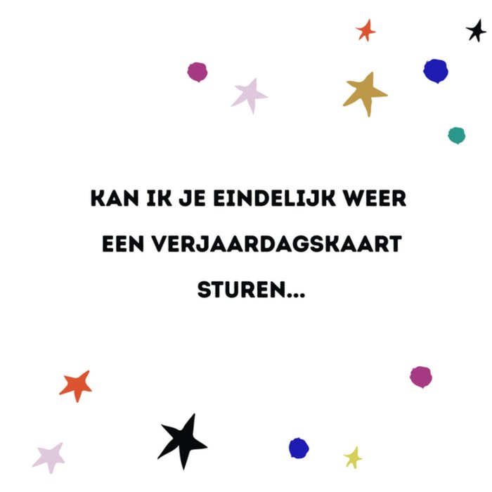 Ken je iemand die dit jaar ein-delijk zijn/haar verjaardag kan vieren omdat het een schrikkeljaar is? Stuur dan deze leuke kaart van Greetz! Op deze kaart staat: kan ik je eindelijk weer een verjaardagskaart sturen.