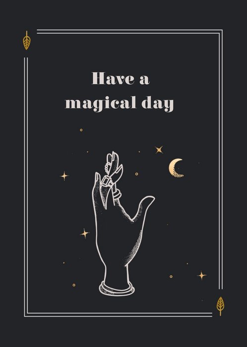 Wenskaart van Greetz ontworpen door Greetz designers, volgens de laatste trends. Voeg je eigen foto('s), tekst, & versiering toe om de kaart extra persoonlijk te maken. Je kunt de kaart toevoegen aan je favorieten of tussentijds opslaan om deze later af te maken. Bekijk hier alle verjaardagskaarten. Verras iemand met zijn of haar verjaardag met deze leuke verjaardagskaart van Greetz! Op de kaart staat: have a magical day.