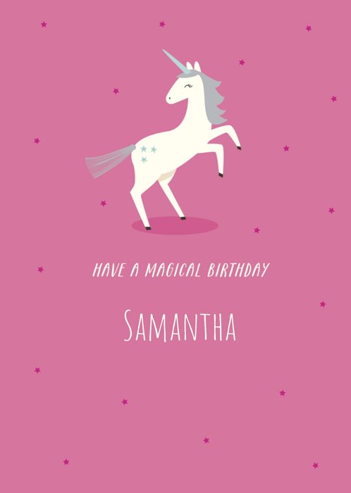 Een leuke verjaardagskaart van UK Greetings met een unicorn en de tekst: Have a magical birthday [naam].