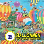 Een grappige verjaardagskaart met illlustraties van Jan van Haasteren. Op de voorkant van de verjaardagskaart staat een illustratie met luchtballonen.