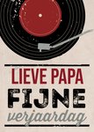 Wens je vader een fijne verjaardag toe met deze verjaardagskaart met een platenspeler op de kaart met de tekst: Lieve papa fijne verjaardag.