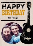 Wens een vriend een fijne verjaardag toe met deze verjaardagskaart met op de kaart een gitaar en de tekst: Happy birthday my friend. Voeg je eigen foto toe op de kaart.