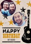 Wens een vriend een fijne verjaardag toe met deze verjaardagskaart met op de kaart een gitaar, sterren en de tekst: Happy birthday my friend. Voeg twee eigen foto's toe op de kaart.