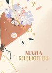 Wens je moeder een fijne verjaardag toe met deze vrolijke verjaardagskaart met de tekst: mama gefeliciteerd.