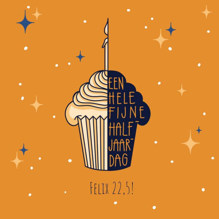 Wat een leuke verjaardagskaart van één van onze designers: Aileen. Op deze verjaardagskaart staat: Een hele fijne half jaar dag. Je kunt een naam en leeftijd toevoegen.