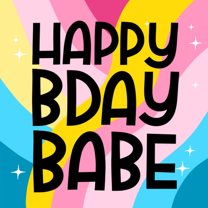 Jeej! Jij kent iemand die binnenkort jarig is! Tijd voor een verrassing dus en hoe leuk is dat om dat te doen met een vrolijke verjaardagskaart van Greetz! Op de kaart staat: Happy bday babe.