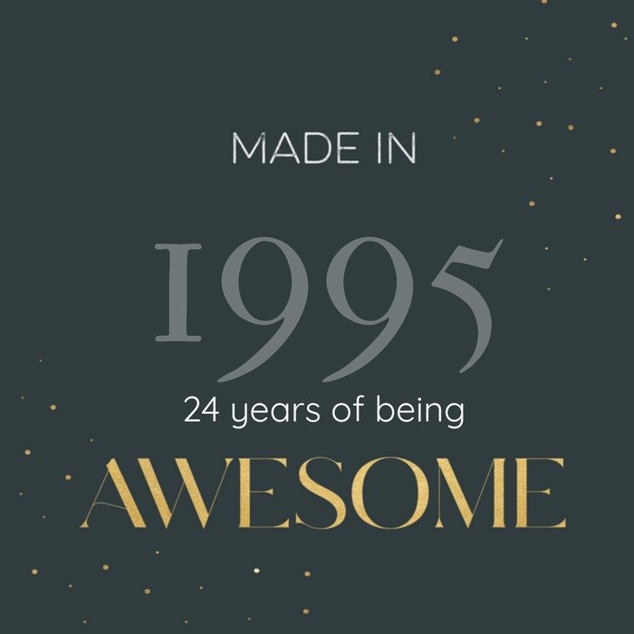 Op deze minimalistische verjaardagskaart staat: Made in 1995, 24 years of being awesome. De tekst is aanpasbaar.