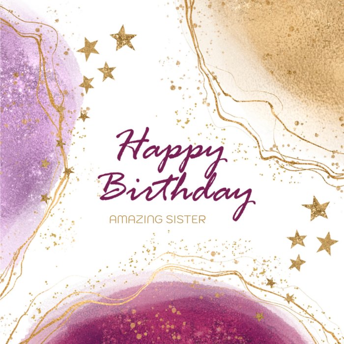 Wens je zus een fijne verjaardag toe met deze mooie verjaardagskaart met de tekst: Happy birthday amazing sister.