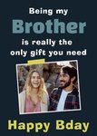 Is jouw grote of kleine broer jarig? Stuur ze dan een leuke verjaardagskaart met Greetz! Op deze kaart staat: Being my brother is really the only gift you need. Happy birthday. Ook kun je een foto toevoegen