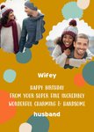 Op zoek naar een leuke humoristische verjaardagskaart? Ook zie je een prachtige taart en de tekst: Wifey happy birthday from your super fine incredibly wonderful charming & handsome husband.