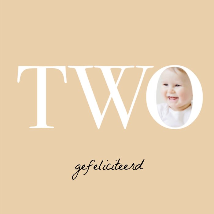 Stuur deze leuke kaart om iemand te verrassen. Op deze kaart van Greetz staat met grote letters: Two. Daarnaast kun je ook nog een leuke foto toevoegen.