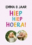 p deze leuke verjaardagskaart staat: Hiep hiep hoera! Ook kun je een naam, foto en leeftijd toevoegen.