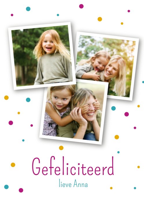 p deze leuke verjaardagskaart staat: Gefeliciteerd! Ook kun je een naam en foto's toevoegen.