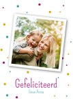 p deze leuke verjaardagskaart staat: Gefeliciteerd! Ook kun je een naam en foto toevoegen.