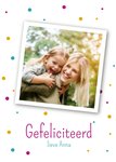 p deze leuke verjaardagskaart staat: Gefeliciteerd! Ook kun je een naam en foto toevoegen.