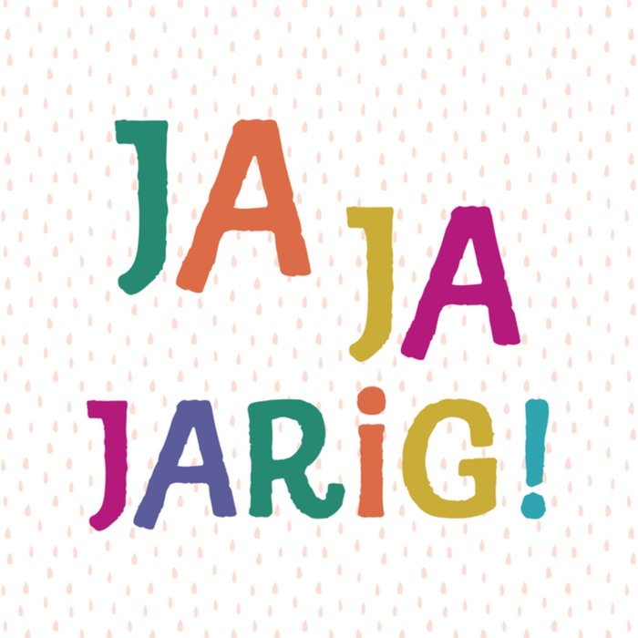 Op deze leuke verjaardagskaart staat: Ja, Ja Jarig.