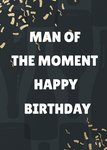 Op deze stoere verjaardagskaart staat: Man of the moment. Happy birthday.