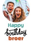 Op deze vrolijke verjaardagskaart staat: Happy birthday broer. Ook kun je een foto toevoegen.
