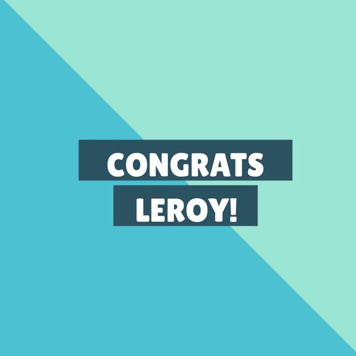 Op deze vrolijke kaart staat: Congrats. Ook kun je een naam toevoegen.