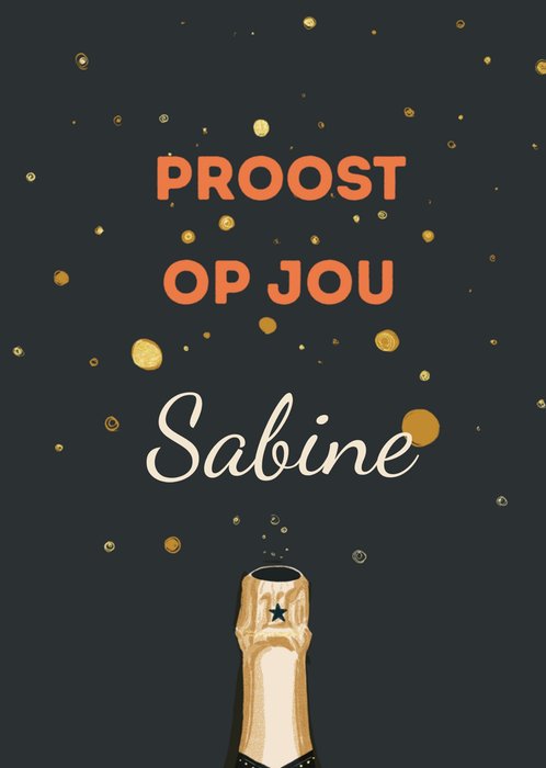Op deze verjaardagskaart staat: Proost op jou. Ook kun je een naam toevoegen.