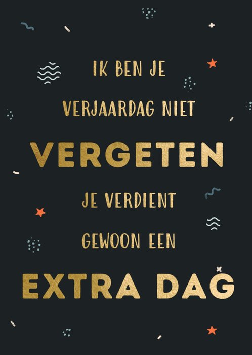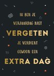 Op deze verjaardagskaart staat: Ik ben je verjaardag niet vergeten. Je verdient gewoon een extra dag.